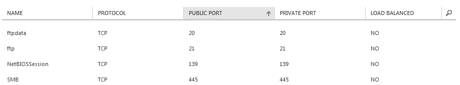 For this example, you can install your own FTP server in Azure (good guide is here), but it will be enough to start the virtual machine in the Azure and share one folder. The only thing you must set up are VM Endpoints. For the FTP Server you need, at least, all of displayed below. For the file sharing are only necessary the NetBIOSSession and SMB.