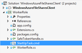 Copy the code below in the file StartUpTask.cmd which should be included in the project project where Worker Role to monitoring the shares will be implemented.