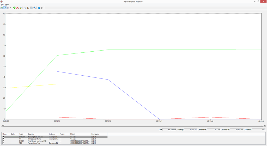 Working Set – Private (in bytes) (\Process(JoiningInMemoryDataWithDBTable)\Working Set – Private)