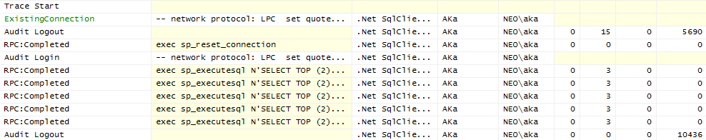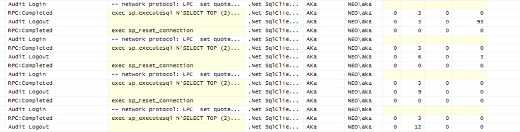 Audit Login means the connection was open and the Audit Logout stays for the connection closed. Calling the method GetEmployeesWithImplicitConnection with the list of ten thousand ids, is opening and closing the connection ten thousand times!