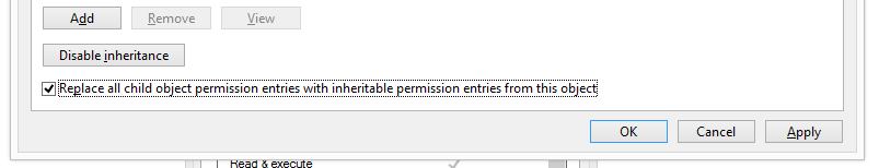 So I navigate to the c:\Users, right click on the folder Default (which is hidden per default), Properties, Security Tab, Advance, Change Permissions and checked “Replace all child object permissions entries with the inheritable permissions entries from this object”.